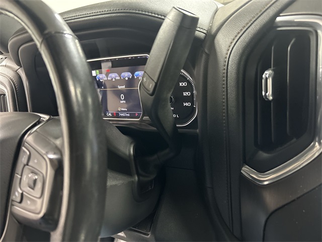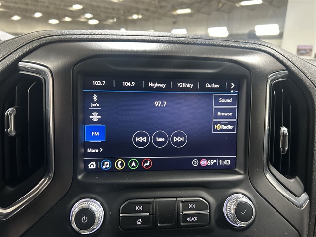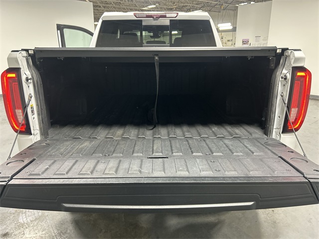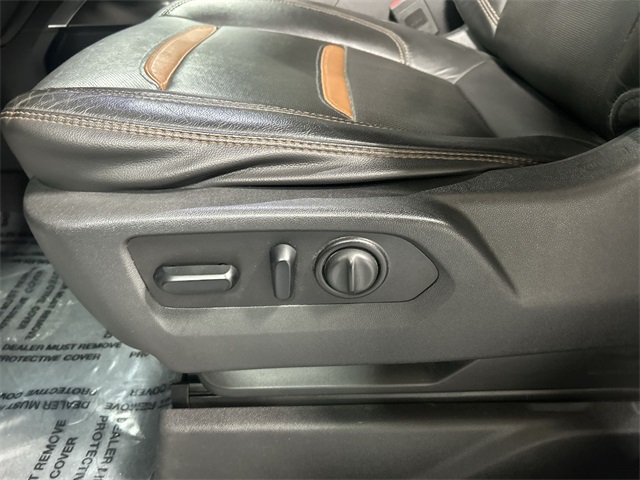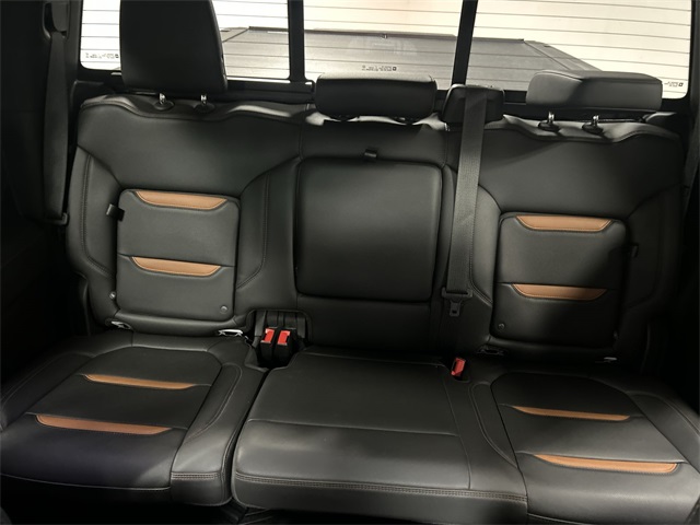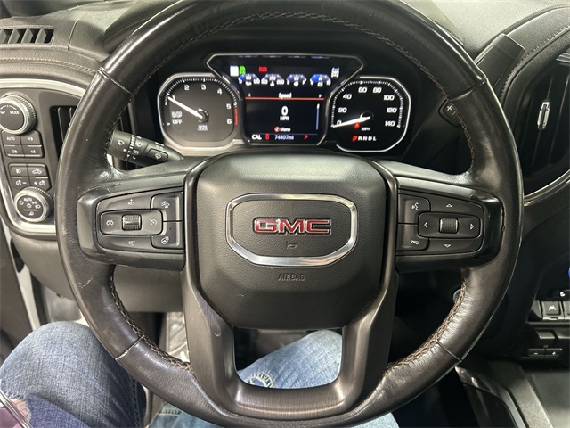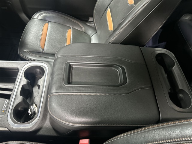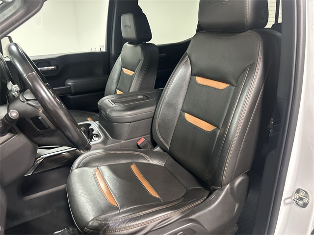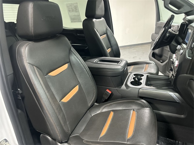 The Sierra 1500 AT4 includes a long list of sought after features such as heated and ventilated front seats heated second row seats heated steering wheel perforated leather appointed seating power sunroof dual zone climate control power driver and passenger seats memory seating and a floor mounted center console Technology features include navigation system Apple CarPlay Android Auto premium GMC Infotainment System Bose seven speaker audio system multicolor fifteen inch head up display rear camera mirror HD surround vision with trailer view provisions adaptive cruise control front pedestrian braking lane change alert with side blind zone alert lane keep assist and automatic emergency braking This AT4 also includes off road suspension hill descent control heavy duty rear locking differential and the ProGrade trailering system with hitch guidance bed view camera integrated trailer brake controller and spray on bed liner It also features twenty inch machined aluminum wheels rectangular black assist steps remote start LED cargo lighting and multiple power outlets including a bed mounted outlet and instrument panel outlet