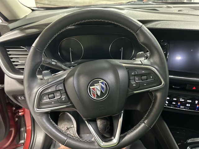 The Comfort and Convenience Package on this Envision Preferred elevates your daily commute with features like a hands-free power liftgate, heated steering wheel, dual-zone climate control, and a premium audio system. The Cinnabar Metallic exterior color adds a touch of sophistication, complementing the well-appointed interior.