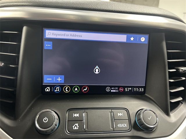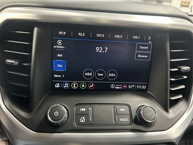 This Acadia SLT includes heated and ventilated front seats, heated rear outboard seats, a heated steering wheel, premium seating surfaces, and both an 8 way power driver seat and 8 way power passenger seat with power lumbar adjustments. Technology features include wireless Apple CarPlay, wireless Android Auto, SiriusXM with 360L, an AM FM audio system with an 8 inch multi touch navigation display, a full navigation system, auto dimming rearview mirror, garage door transmitter, and power tilt and telescopic steering column. The Bose premium 8 speaker audio system adds a quality listening experience for your daily drives