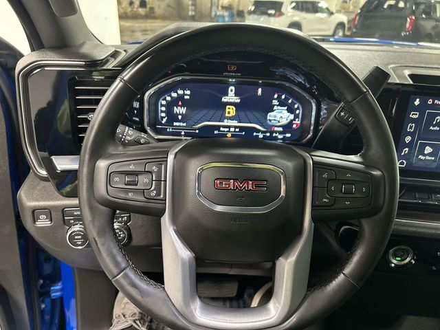 Dynamic Blue Metallic 2023 GMC Sierra 1500 Elevation now available at Green Buick GMC Inc in Davenport Iowa. This one owner truck is in excellent condition with a completed dealer safety inspection a recent oil change and a full interior and exterior detail. It is fully prepared for work daily driving and weekend use across the Quad Cities.