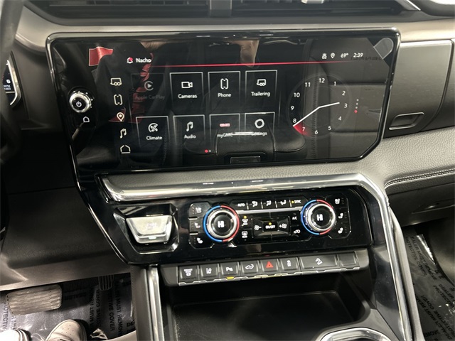 The Sierra 2500HD Denali is powered by a Duramax 6.6L V8 turbodiesel engine paired with a 10-speed automatic transmission and 4WD for maximum strength and durability. Key features include the Denali Reserve Package Bose premium audio system multicolor 15-inch head-up display navigation system heated and ventilated front seats heated second-row seats heated steering wheel and perforated leather-appointed seating. Advanced safety technology includes lane departure warning forward collision alert HD surround vision rear cross traffic alert and trailer side blind zone alert. Convenience features include wireless charging power sunroof spray-on bedliner with Denali logo and integrated trailer brake controller with gooseneck and fifth-wheel prep package.