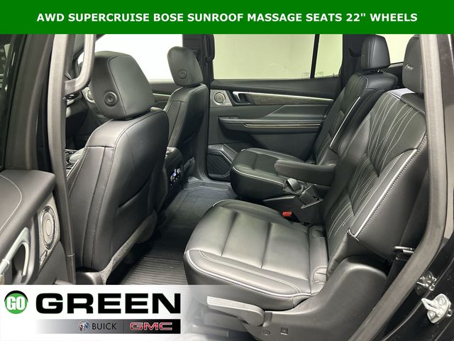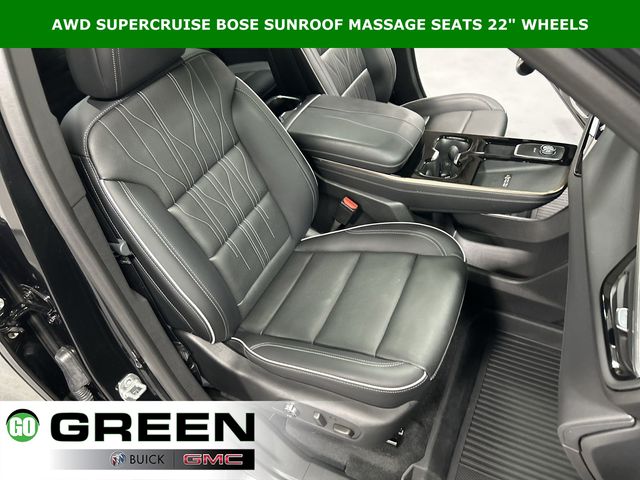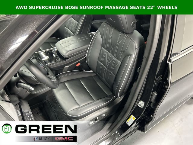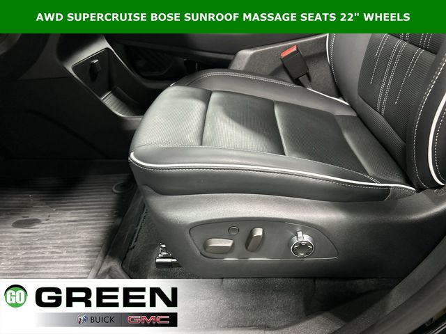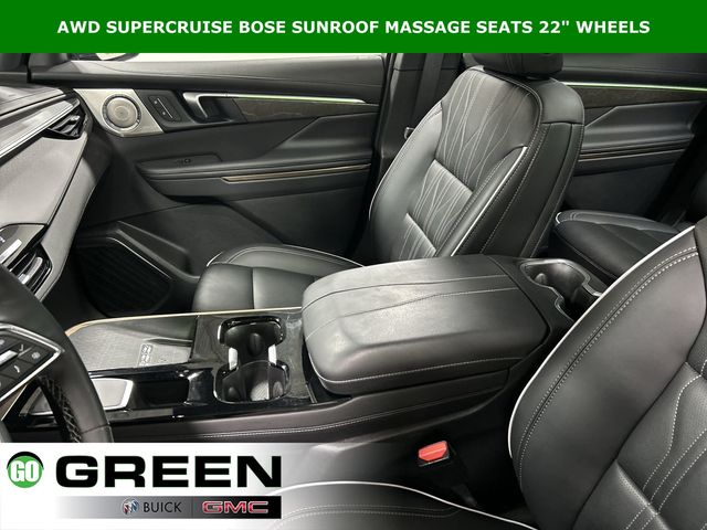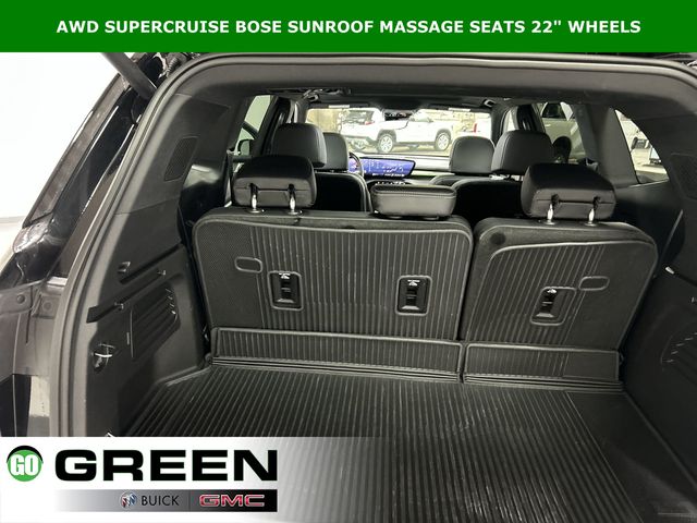 Clean History Report, Passed Dealer Safety inspection, Recent Oil Change, Detailed, 1st and 2nd Row All-Weather Floor Liners, 3rd Row All-Weather Floor Liner, 3rd row seats: split-bench, 5,000 lbs Trailering Package, Adaptive suspension, Auto High-beam Headlights, Auto tilt-away steering wheel, Auto-dimming door mirrors, Auto-dimming Rear-View mirror, Automatic temperature control, Bose Performance 16-Speaker Audio System, Driver 4-Way Power Lumbar Seat Adjuster, Driver 8-Way Power Seat Adjuster, Driver Attention Assist, Driver Massage Control with 4-Way Power Lumbar, Enhanced Automatic Parking Assist, Floor Liner Package, Four wheel independent suspension, Front Bucket Seats, Front dual zone A/C, Front Passenger 4-Way Power Lumbar Seat Adjuster, Front Passenger 6-Way Power Seat Adjuster, Front Passenger Massage Control with 4-Way Power Lumbar, Fully automatic headlights, Garage door transmitter, Heads-Up Display, Heated Driver and Front Passenger Seats, Heated front seats, Heated rear seats, Heated steering wheel, Heavy-Duty Cooling System, Hitch Guidance, Hitch View with Pan/Zoom/Tilt Image Adjustment, Inside Rearview Auo-Dimming Rear Camera Mirror, Memory seat, Memory Settings, Navigation System, Power Liftgate, Power moonroof, Preferred Equipment Group 1SP, Premium audio system: Buick Infotainment System, Quilted and Perforated Leather-Appointed Seat Trim, Radio: Infotainment Center, Rain sensing wipers, Rear air conditioning, SiriusXM with 360L Trial Subscription, Super Cruise, Super Cruise Package, Telescoping steering wheel, Tilt steering wheel, Trailer Hitch Kit, Ventilated Driver and Front Passenger Seats, Ventilated front seats, Ventilated rear seats, Wheels: 22" Alloy with Avenir Pearl Nickel Finish, Wireless Apple CarPlay, Wireless Google Android Auto.