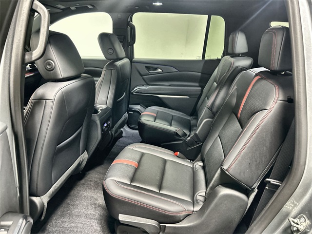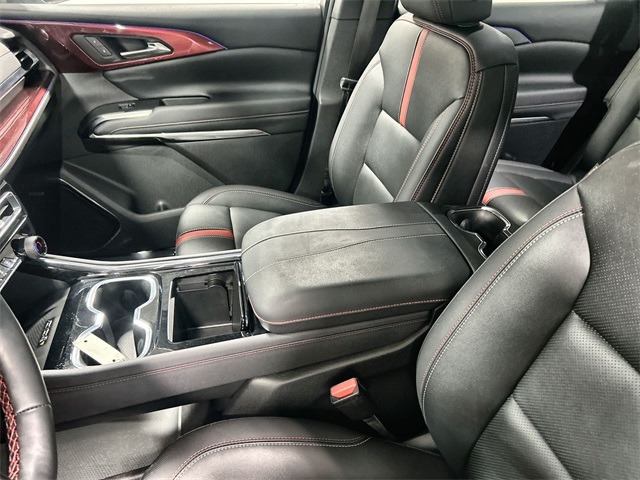 The Traverse RS is powered by a 2.5L DOHC engine paired with an 8-speed automatic transmission and all-wheel drive for confident performance in all conditions. Key features include a 17.7-inch diagonal display Bose premium 12-speaker audio system navigation system heated and ventilated front seats heated rear seats heated steering wheel perforated leather-appointed seating and a power dual glass panoramic sunroof. It also offers Apple CarPlay Android Auto SiriusXM with 360L and 22-inch high gloss black aluminum wheels for added style and convenience.