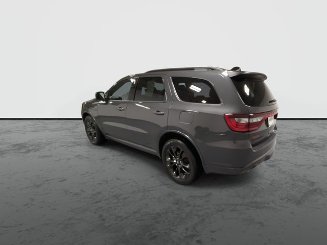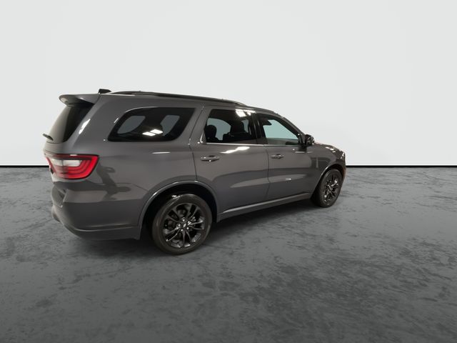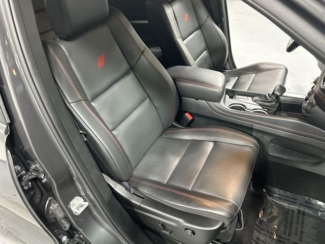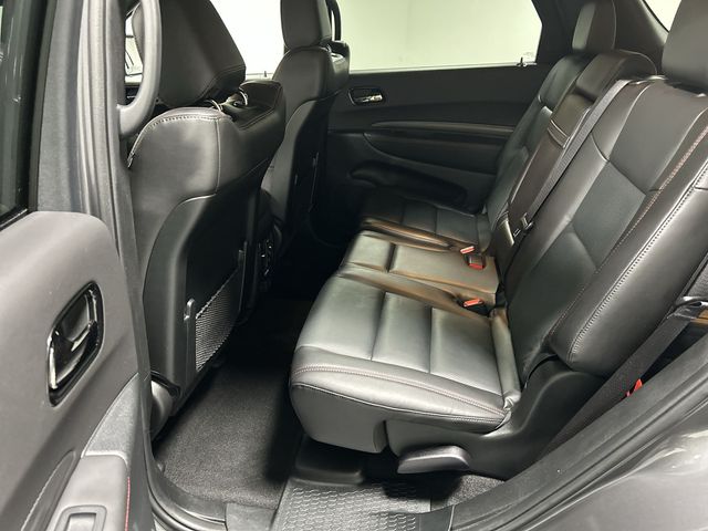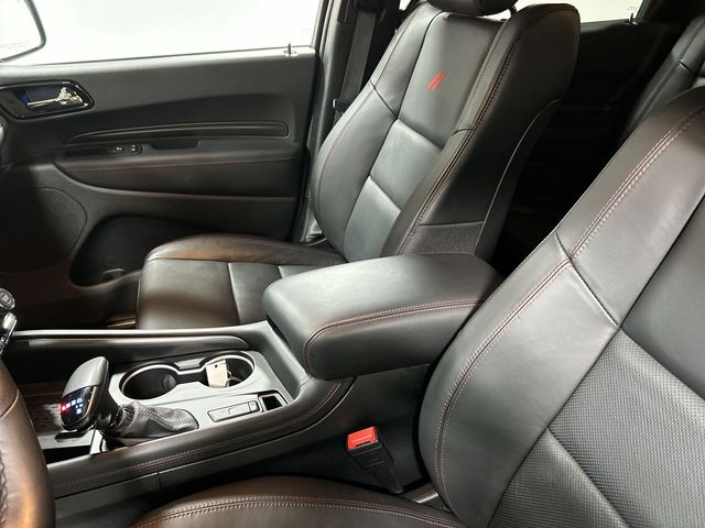 This Durango R/T Plus is equipped with a comprehensive QUICK ORDER PACKAGE 22T, including features like a power sunroof, heated second-row seats, ventilated front seats, and a power liftgate. The BLACKTOP PACKAGE adds a touch of bold style with 20-inch black wheels and gloss black exterior accents.